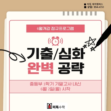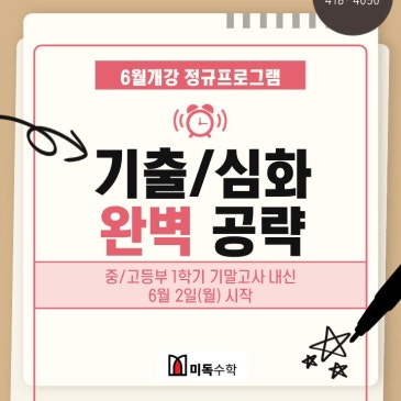 미독수학 송파캠퍼스입니다. 6월 개강 정규반/맞춤반 프로그램입니다. ◆입학문의 : 416-4050